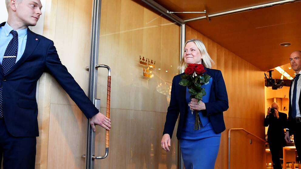 Detta efter att regeringens budget föll vilket fick. Talmannen Andreas Norlén valde att nominera Magdalena Andersson som statsminister i måndags trots att hon ännu inte hade tillräckligt stöd för att bilda regering. 54-årige Magdalena Andersson er Sveriges første kvindelige statsminister.